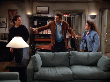 In addition to the rhythmic qualities of the dialogue in The Fix-Up, the writing also displays an extraordinary depth of functionality in this episode. We see characters expose, deceive, confide and persuade one another—all through language. In another way, The Fix-Up displays the malleability of language: its flimsiness that allows us to retool it in order to serve our needs best. As a result, dialogue takes on most of the responsibility for the comedy in this episode, relying on structure, time and inflection rather than Kramer’s slapstick routines, wacky supporting characters or whimsical premises (most of which came to define later seasons).